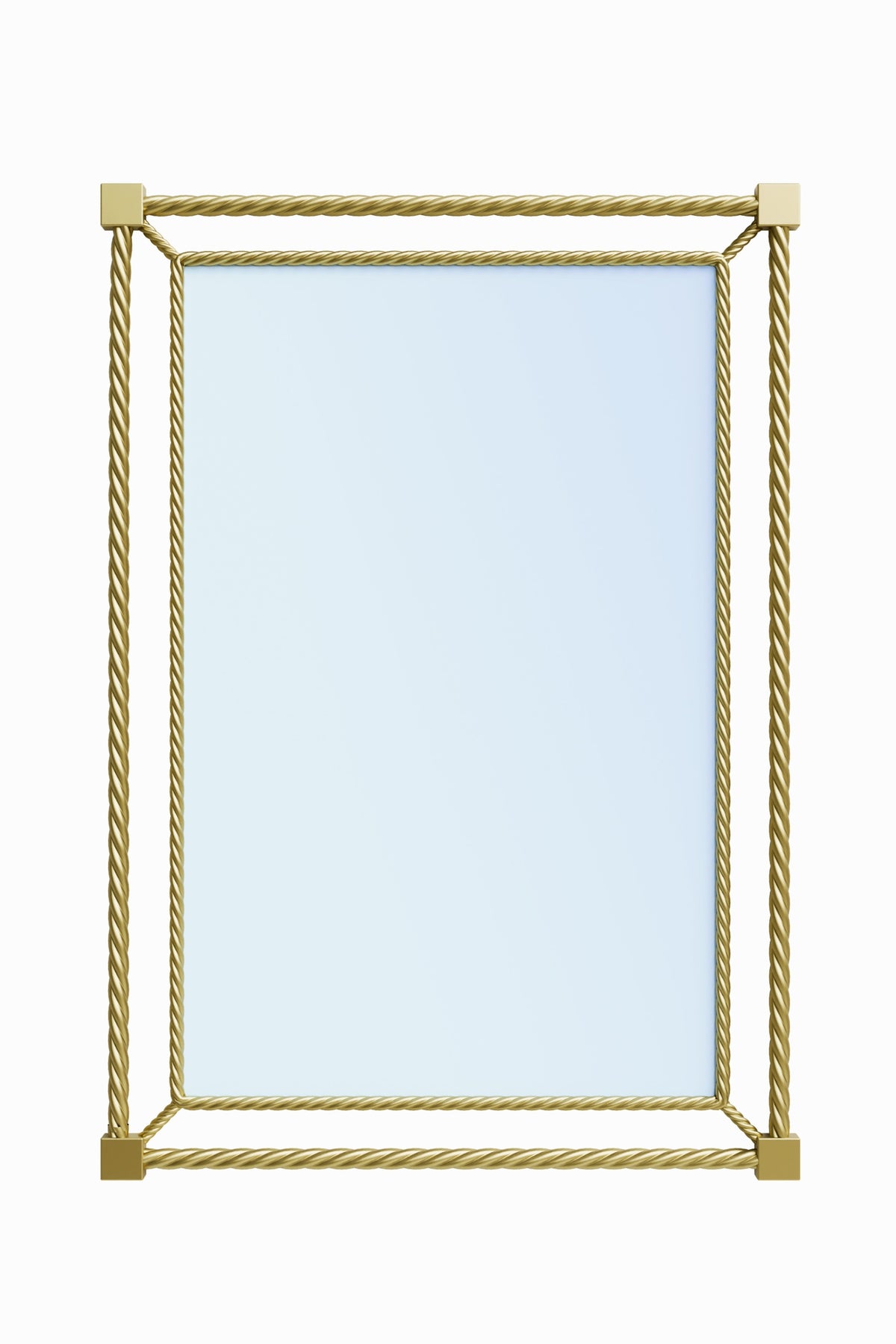 Noura wall mirror in gold finish with rope-inspired metal frame and refined rectangular proportions.