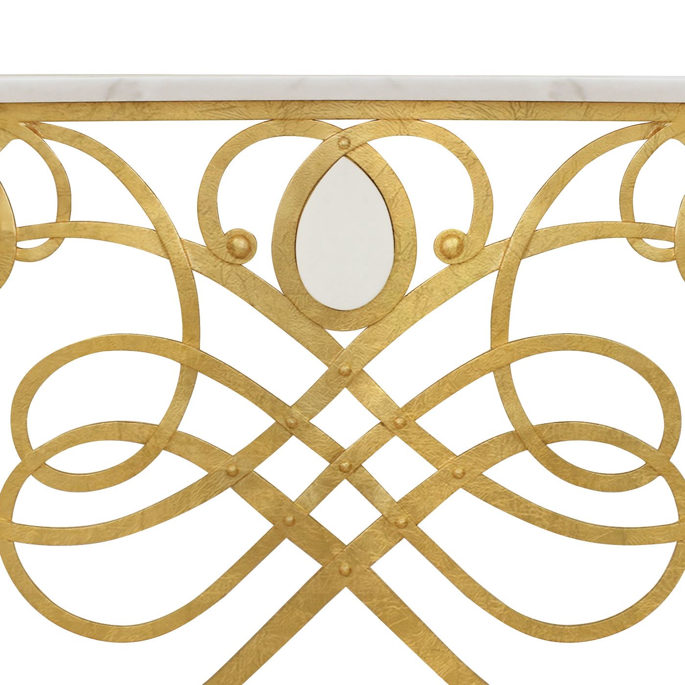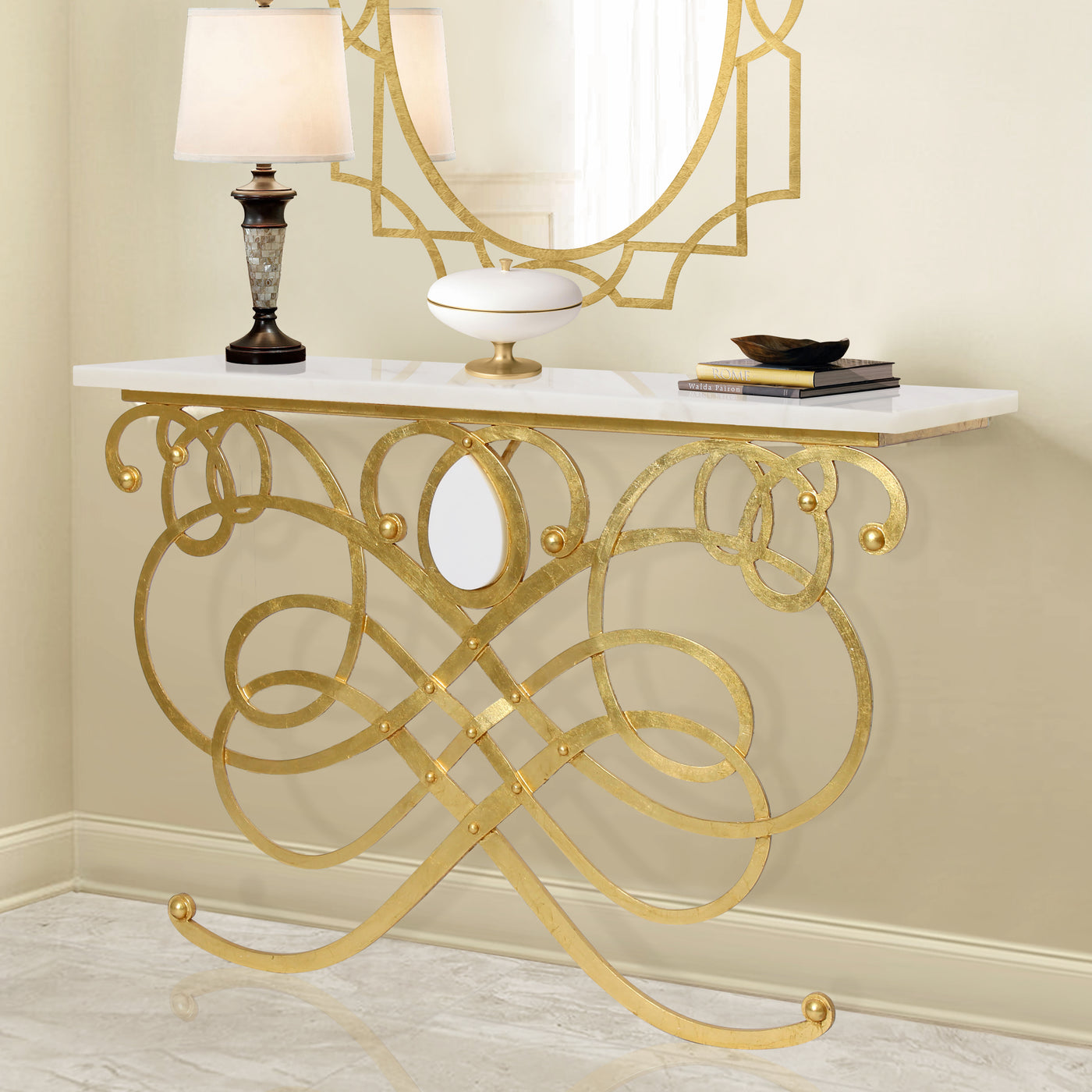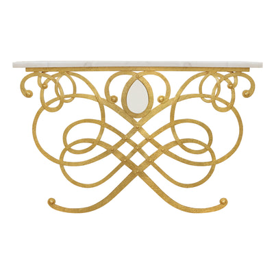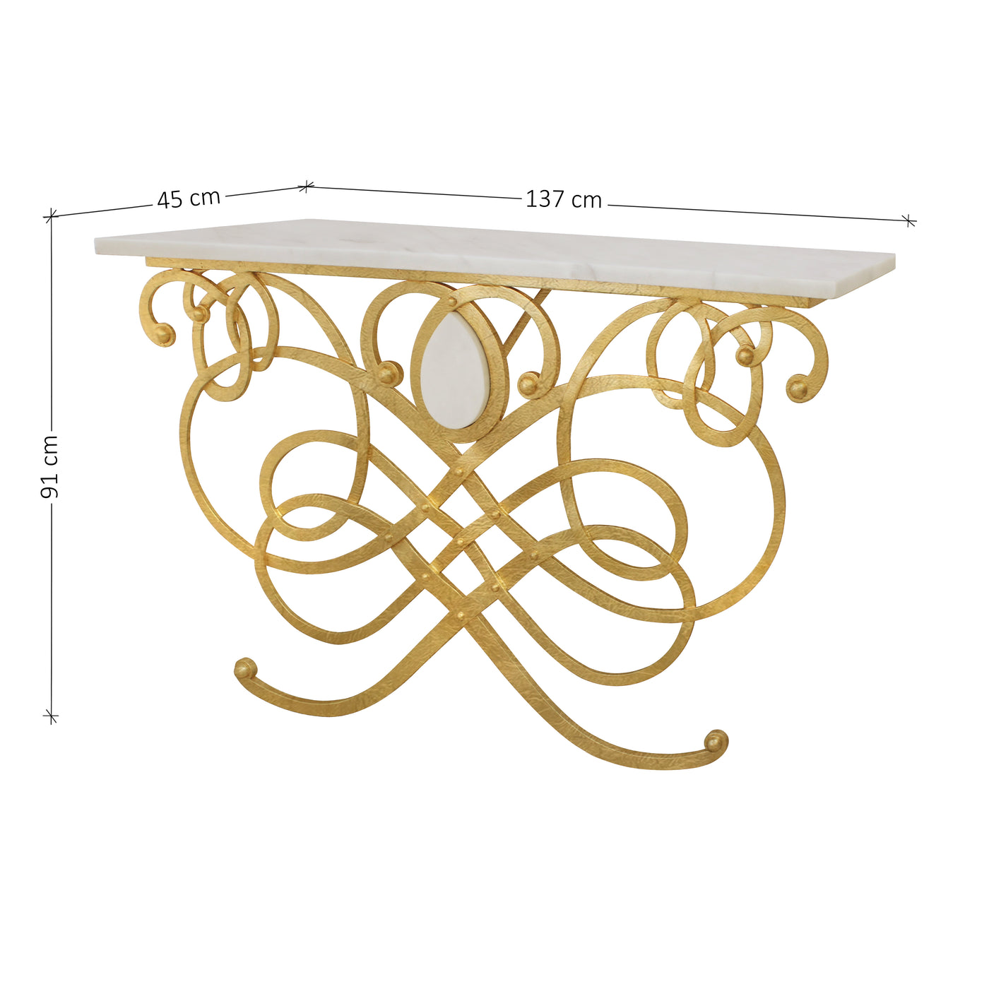 An ornate console featuring graceful scrolls and an opulent base, the Farah Console brings grandeur and fluidity to refined interiors.